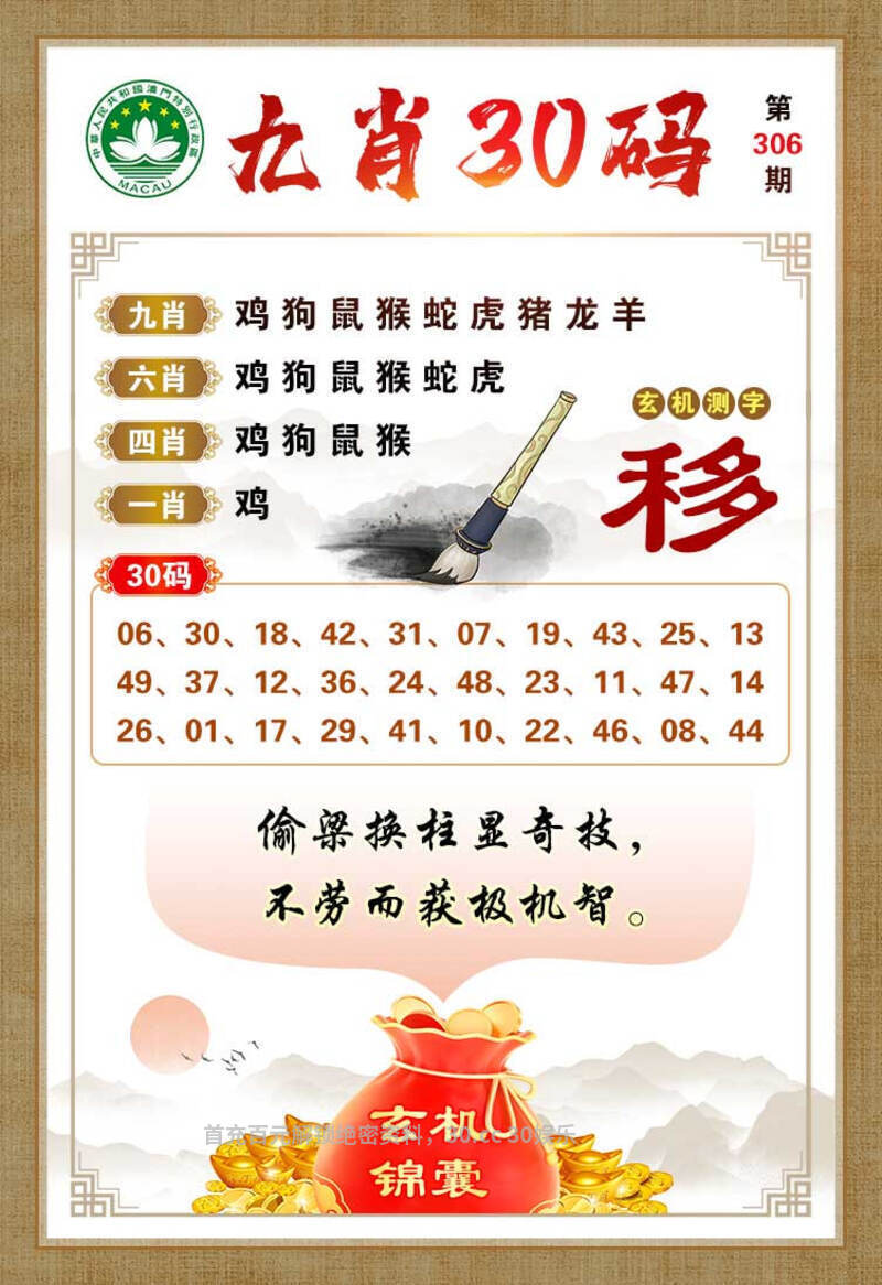 | 306期:九肖 | 马兔牛虎猪蛇羊龙猴 | 開:牛17 |